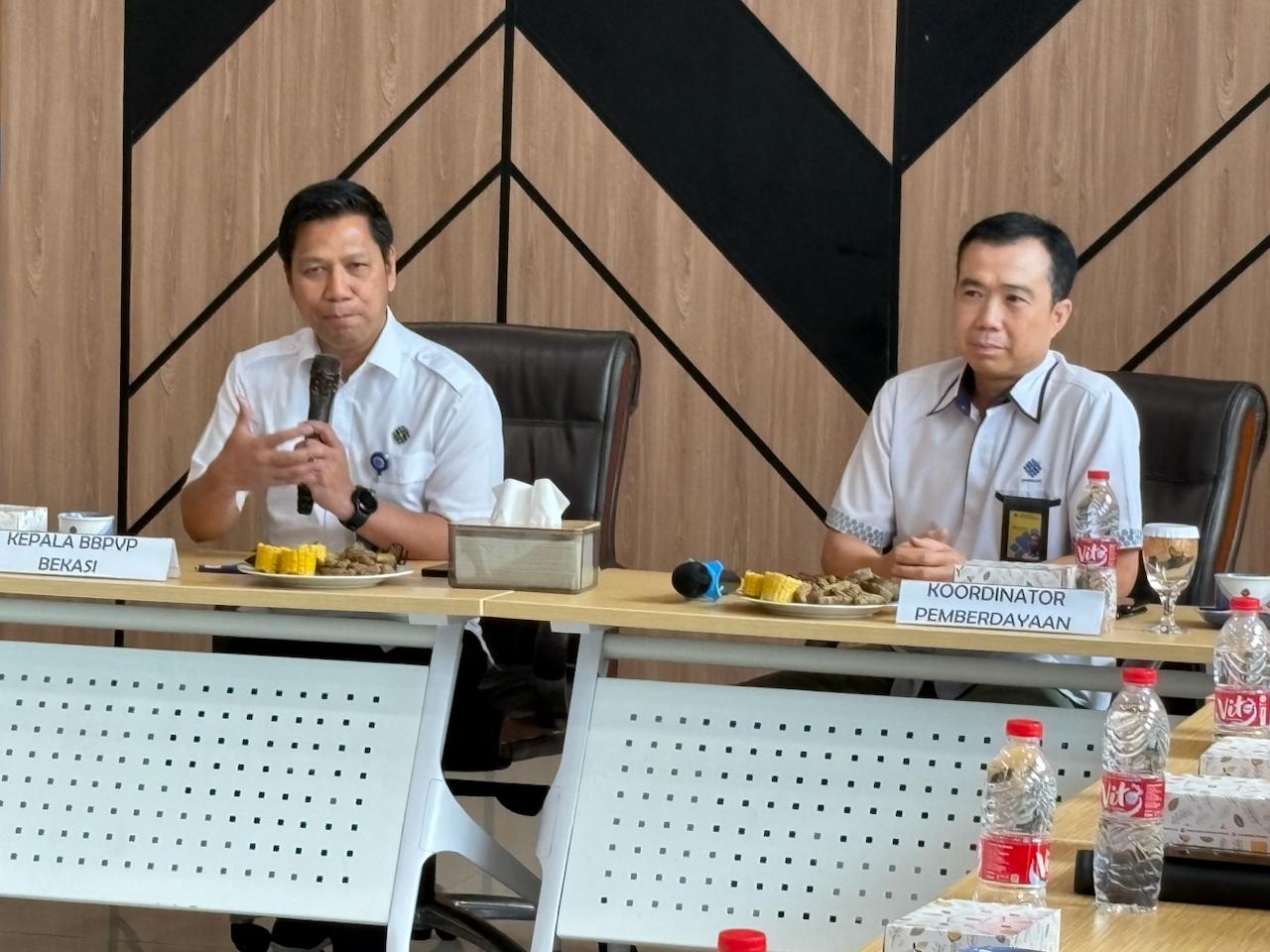 Kepala BBPVP Bekasi, Yoses Rizal didampingi oleh Koordinator Pemberdayaan, Ibnu saat acara Coffee Morning di Aula Gedung Creative, Selasa, 30/09/2025.