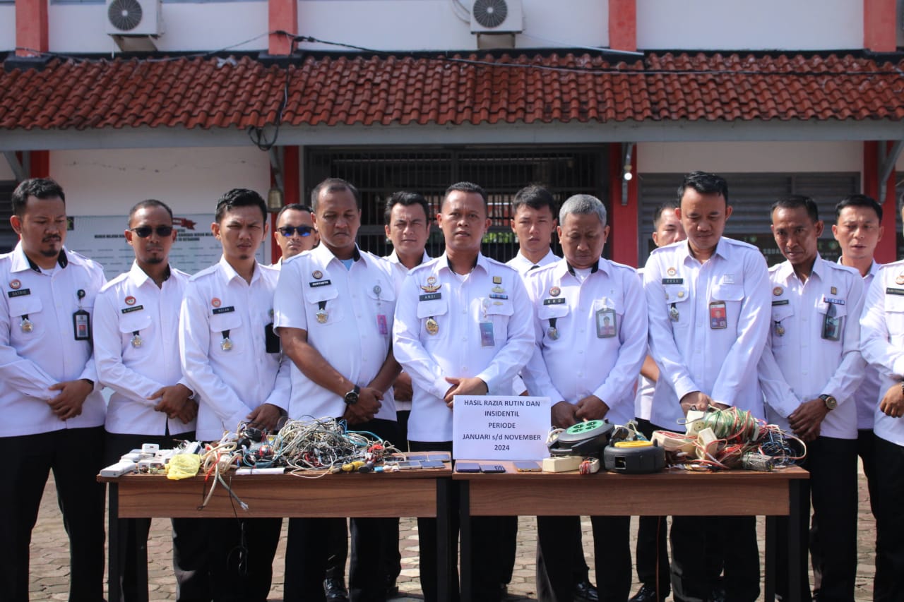 Tanggamus, FajarNews – Lembaga Pemasyarakatan (Lapas) Kelas IIB Kotaagung laksanakan pemusnahan barang sitaan hasil razia periode Januari – November 2024 disaksikan langsung oleh warga binaan. Kegiatan ini menjadi wujud dukungan dan implementasi dari program akselerasi dan perintah harian Menteri Imigrasi dan Pemasyarakatan Agus Andrianto, yaitu memberantas peredaran narkoba dan ponsel di lingkungan Lapas.