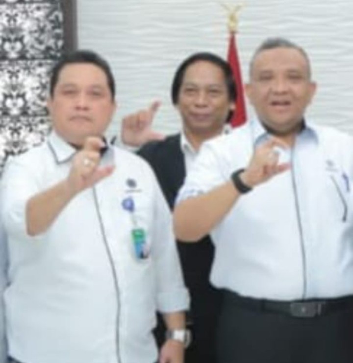 Wamenaker Afriansyah Noor didampingi Mantan Karo Humas Chairul Fadhly Harahap dan Pengurus Forwaker Robert Sitorus.