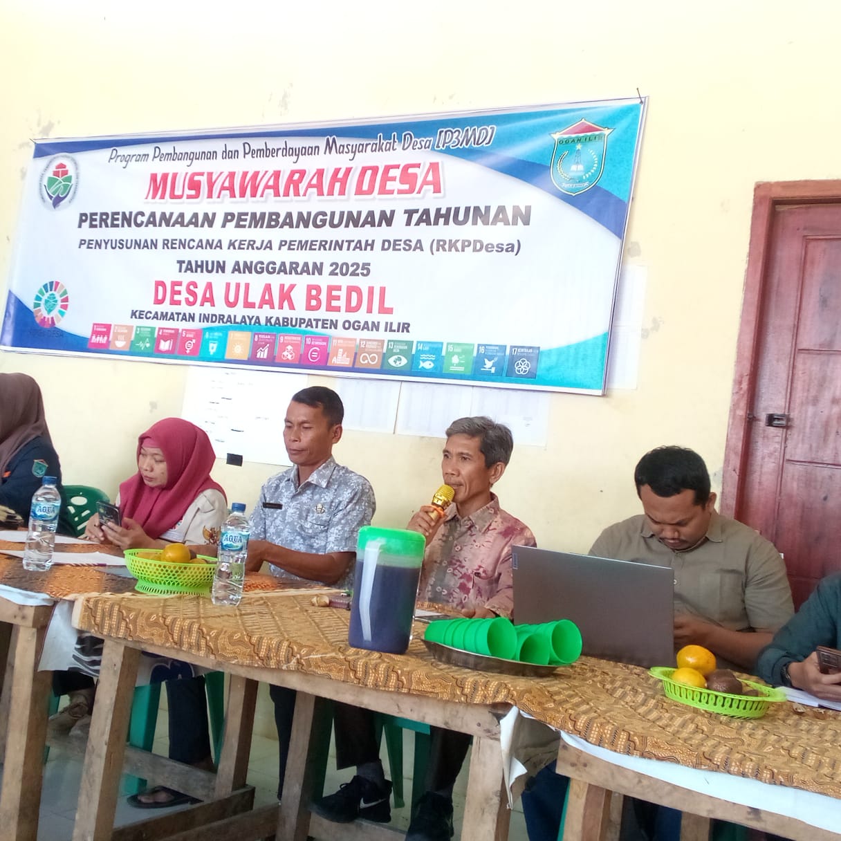 Pelaksanaan kegiatan rapat kerja yang dilakukan oleh kepala desa disambut baik oleh lembaga beserta masyarakat yang ada di desa ulak bedil, hal ini merupakan salah satu bentuk sinergitas antara pemerintah desa ulak bedil, badan permusyawratan desa, kepada masyarakat adapun agenda yang dilakukan pembahasan dalam forum tersebut ada beberapa agenda yang akan dilakukan oleh pemerintah desa terkait MUSRENBANGDEtahun anggaran 2025 tentang pembangunan yang akan dilaksanakan dalam waktu dekat itu merupakan tahapan yang harus dilakukan dalam penyusunan perencanaan pembangunan WC bertempat di depan rumah Sulaiman RT 06 dan masih ada kegiatan lain yang dianggarkan