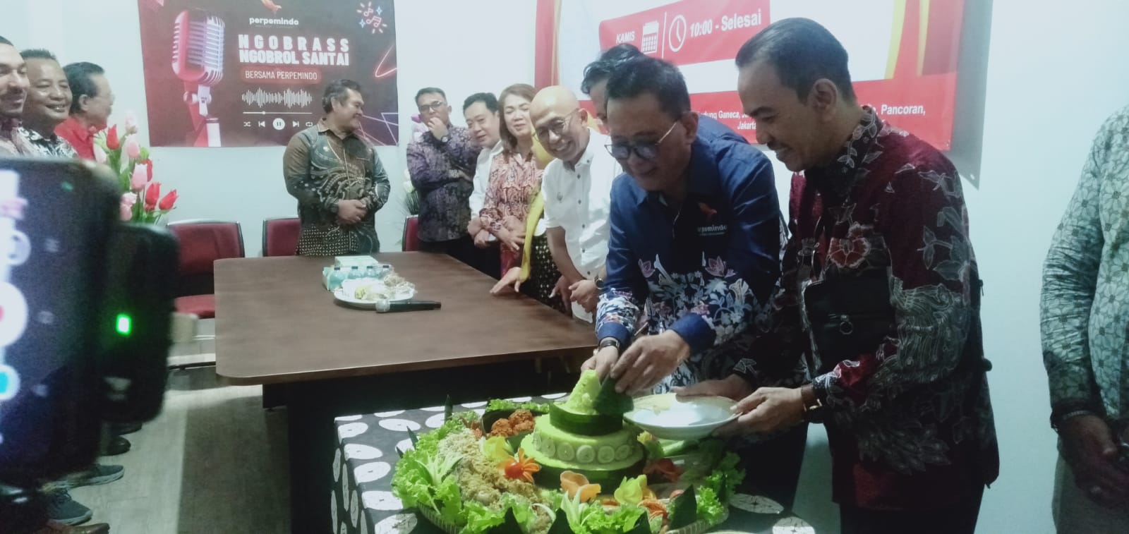 Potong Tumpeng Ketum DPP Permindo, H. Herry Darman,SH didampingi Sekjen Yudi Panca Nugroho.