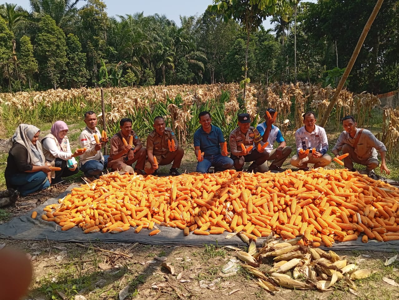 Polsek Tanjung Raja Bersama Pemerintah Desa Pinang Mas Sukses Gelar Panen Jagung dalam Mendukung Ketahanan Pangan Nasional