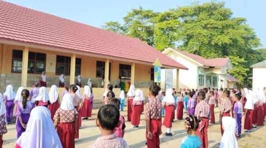 Senam ceria anak Indonesia hebat di SD Negeri 25 Pemulutan mewujudkan generasi sehat dan aktif